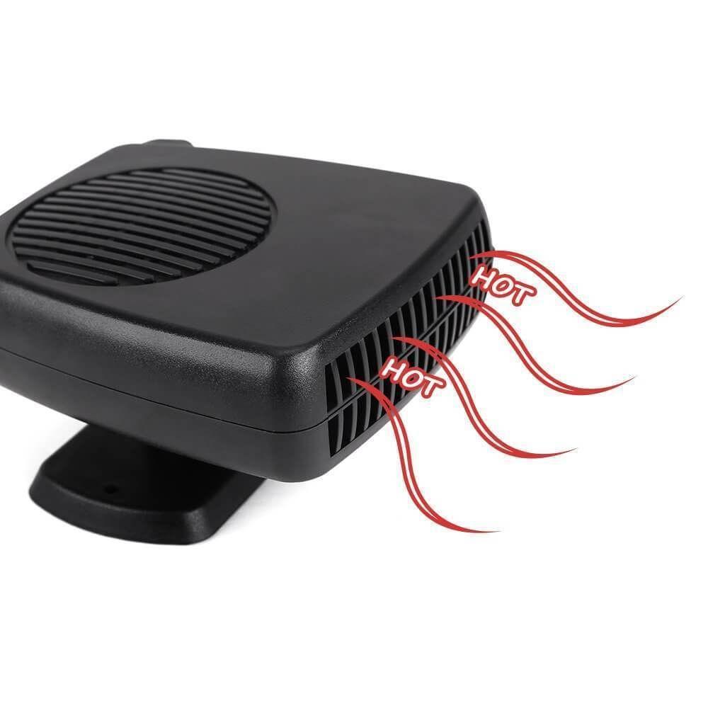 Designed to clear frost, fog, mist, and even snow from your vehicle's windshield, quickly and safely, this portable car heater features three, large, outlet vents that blow in a fixed direction, letting you warm your car, while clearing the windows of dangerous visual obstacles. Keep your view clear and drive safely! This 12-volt heater quickly clears up fog and other visual obstacles, that can be distracting and dangerous, and quickly allows you to get on your way, faster.